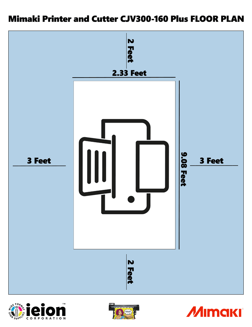 Clearance required around printer for operation and maintenance: 3′ (0.9 m)