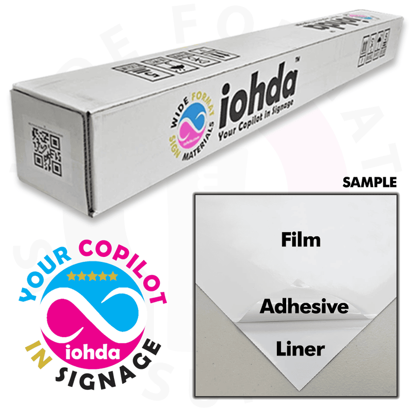 Glossy, white, self-adhesive printing vinyl for everyday decals and signage. The 100 μm monomeric face prints cleanly and cuts well, while the clear permanent adhesive and PE-coated liner deliver smooth application and reliable hold on flat surfaces.Monomeric calendered PVC, White Gloss · 100 μm (≈ 4 mil )Adhesive: Clear permanent acrylic · Liner: 140 gsm , 1-side PE-coated paper Size: 1.37 m × 45 m