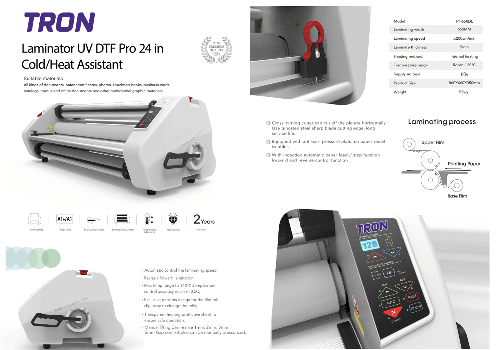 Tron Laminator UV DTF Pro 24 in Cold/Heat Assistant