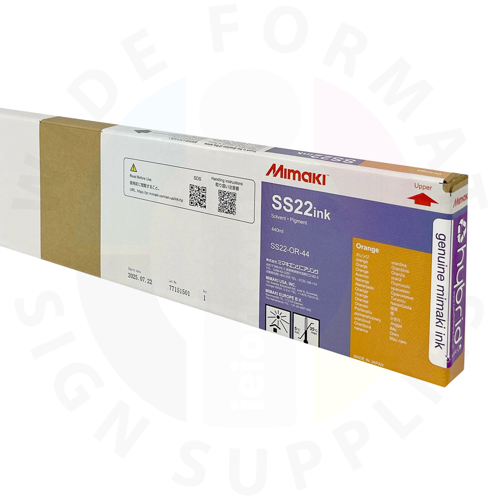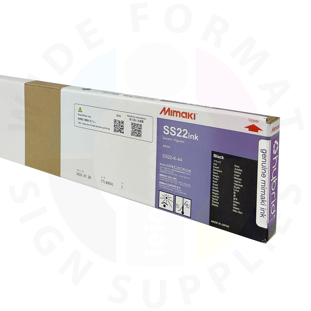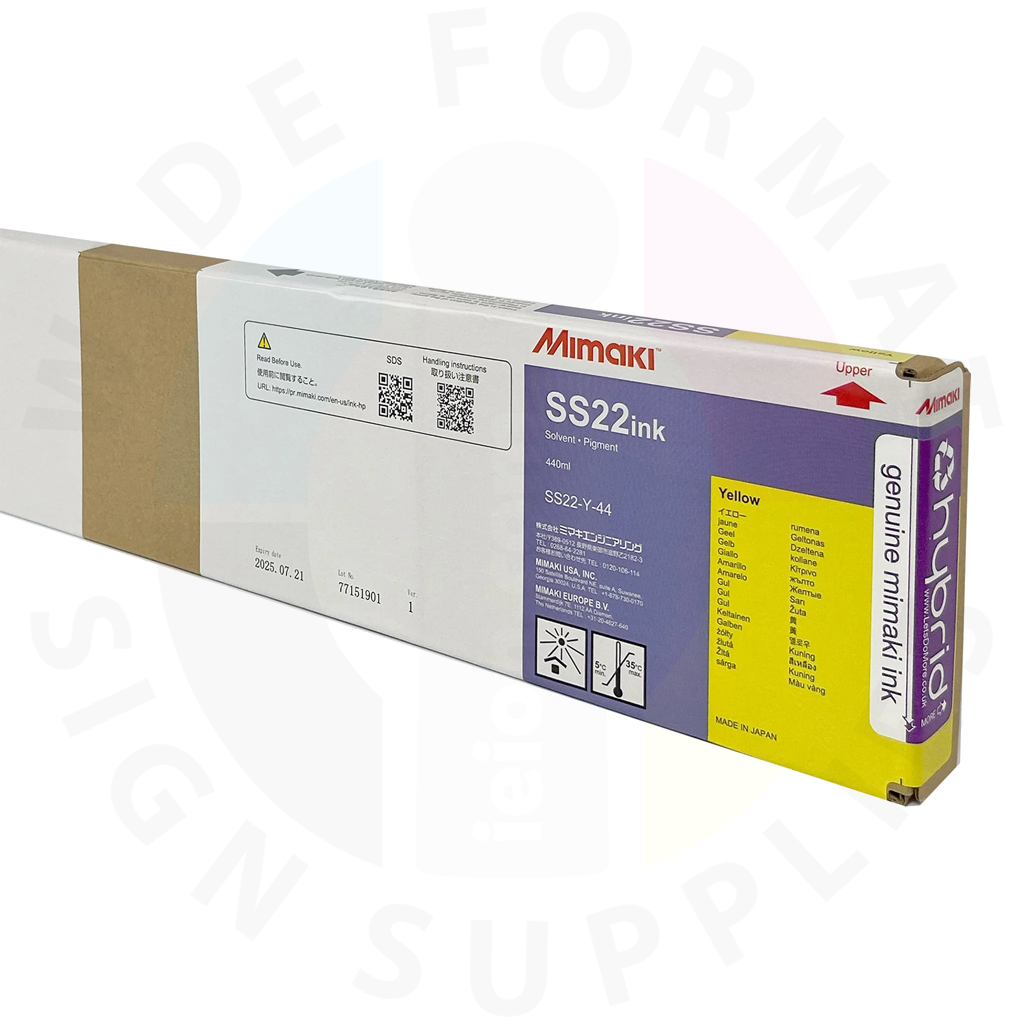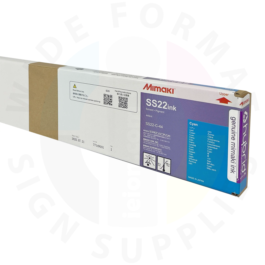 The Mimaki SS22 440ml Eco-Solvent Ink Cartridge is a high-performance ink solution designed for wide-format printing. Engineered for vivid color output and long-lasting durability, SS22 inks are ideal for both indoor and outdoor signage. These inks are GBL-free, making them safer for operators and more environmentally friendly, while maintaining the fast-drying and weather-resistant qualities of their predecessor, SS21.